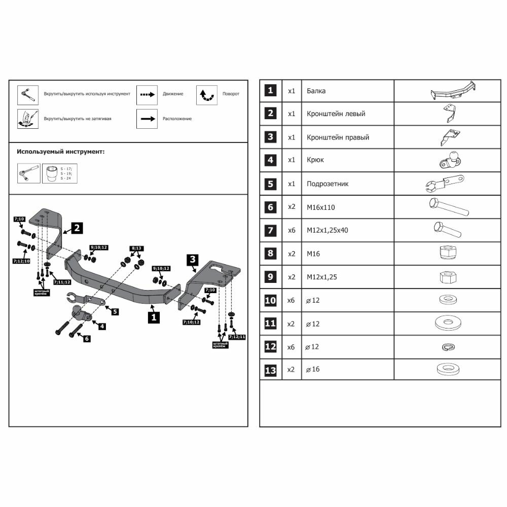 Автомобильный буксирный фаркоп для Toyota Fortuner II покол. (кроме TRD) с 2017 г. в. со съемным шаром, аксессуарами и сертификатом для авто интересное: