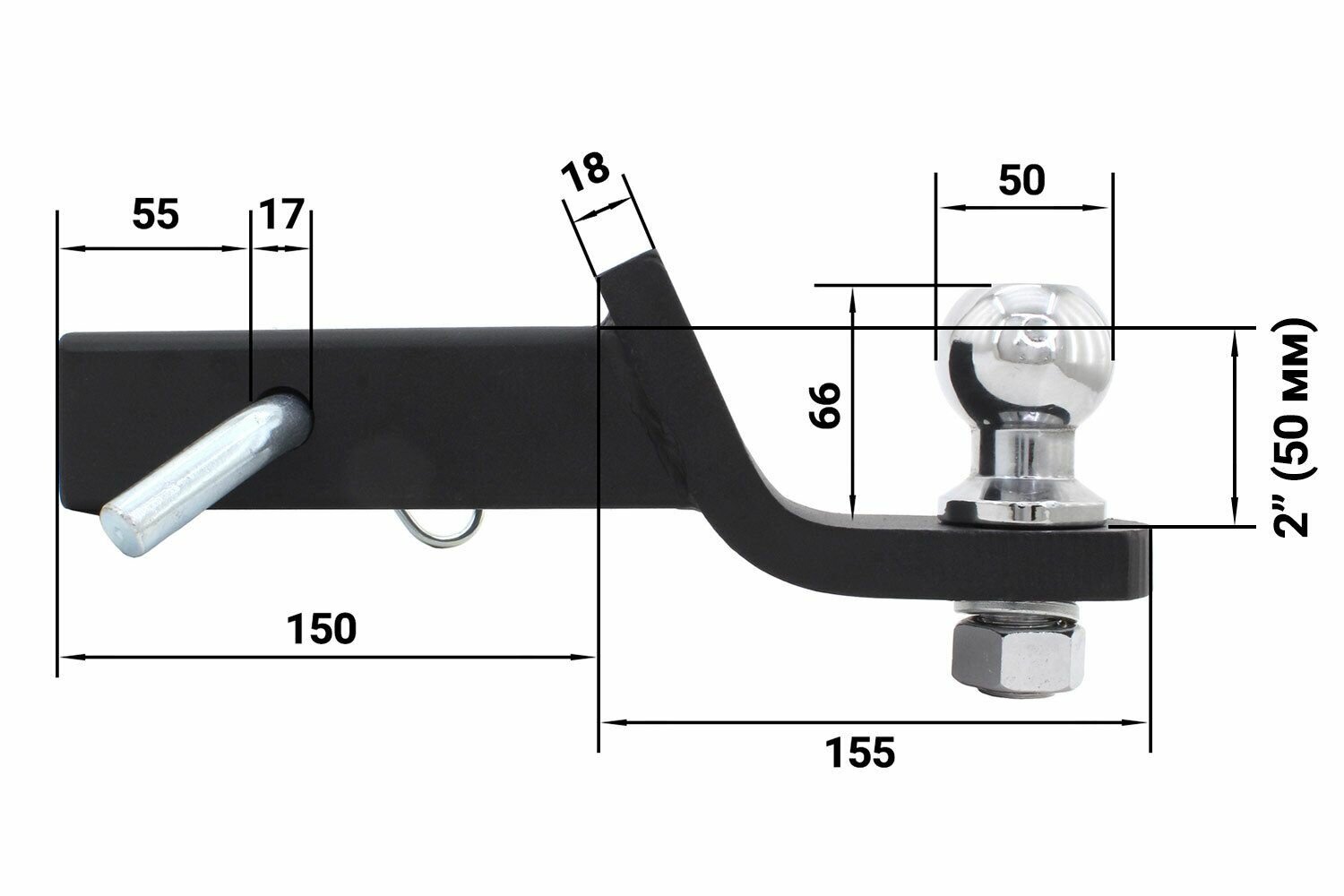 Купить Фаркоп под американский квадрат, занижение 2" - 50 мм, черный (шар, палец)