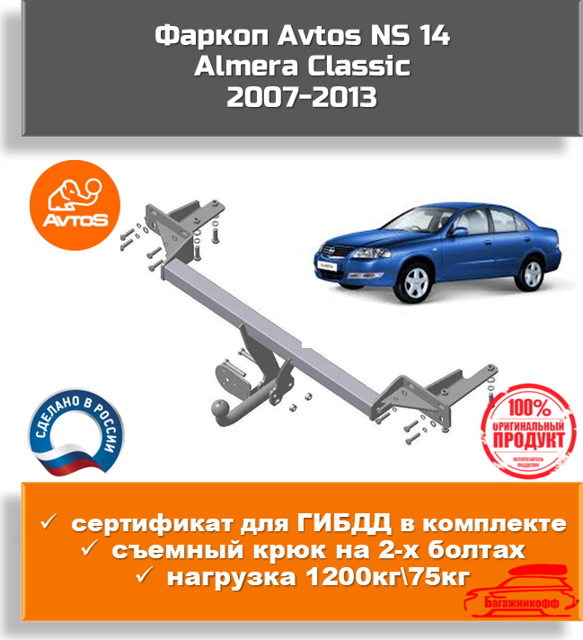 Фаркоп AvtoS NS 14 для Nissan Almera Classic 2007-2013 (паспорт и сертификат в комплекте) интересное: