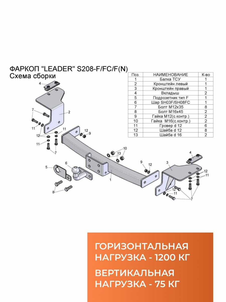 Фаркоп для Ssang Yong Actyon Sports (QJ) (2006-2014) Лидер-Плюс S208-FC интересное: