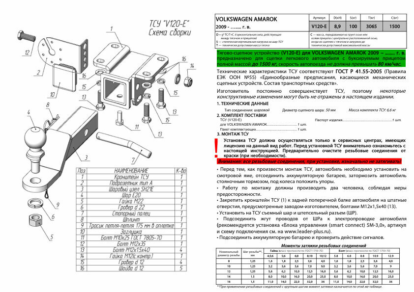 Быстросъемный фаркоп для Volkswagen Amarok (2010-) Лидер-Плюс V120-E интересное: