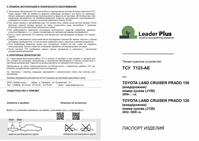 Фаркоп для Toyota L.C. Prado J120 (2002-2009), L. C. Prado J150 (2009-) Лидер-Плюс T123-AE интересное: