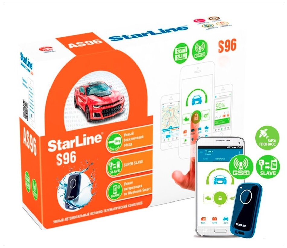 Купить Автосигнализация StarLine S96 v2 BT GSM-GPS с автозапуском и управлением со смартфона (две метки)
