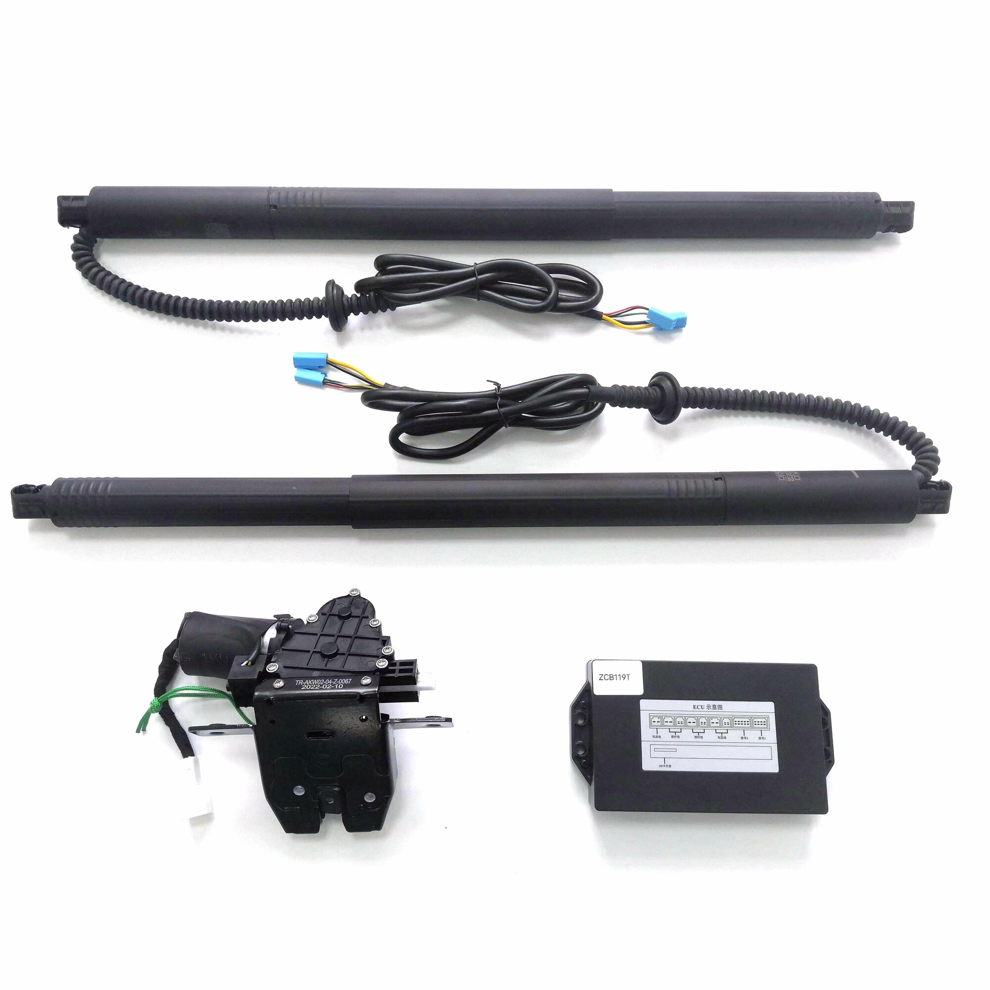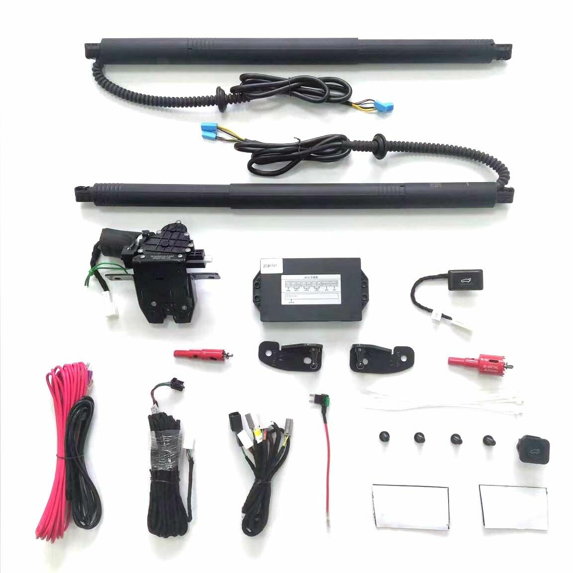 | Состав набора | "1. Электропривод крышки багажника - 2 шт. 2. Электронный блок управления - 1 шт. 3. Кнопка на дверь багажника - 1 шт. 4. Кнопка салона для управления открытием/закрытием багажника - 1 шт. 5. Замок двери багажника - 1 шт. 6. Комплект проводов для подключения привода. 7. Датчик ноги. 8. Инструкция по установке. |