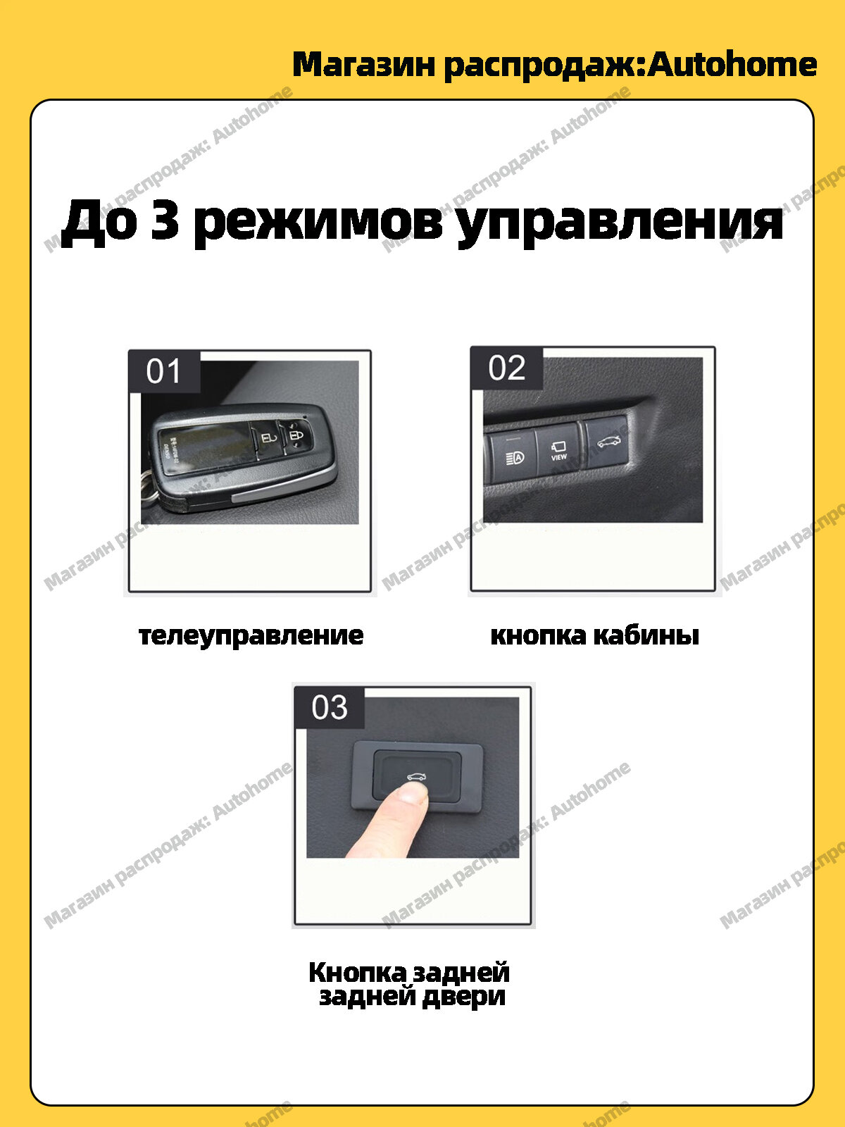 | Состав набора | 1. Электропривода крышки багажника. 2. Электронный блок управления. 3. Кнопка управления закрытием крышки багажника. 4. Кнопка салона для управления открытием/закрытием багажника. 5. Комплект проводов для подключения электропривода. 6. Дотяжка 7. инструкция по установке (русская версия) 8. Онлайн-инструкция по установке (до завершения установки) 9. 2-летняя гарантия на установку O376 D743 |