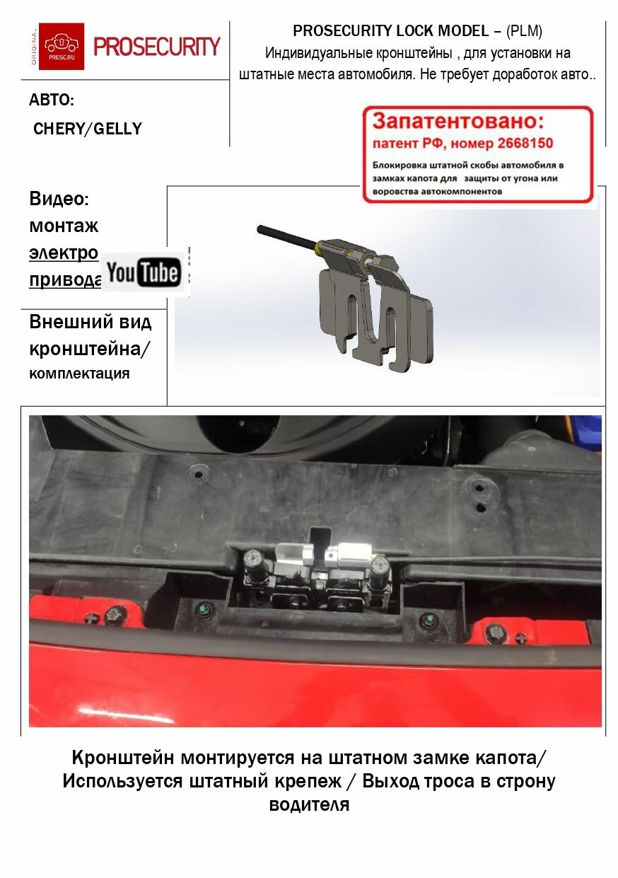 Электромеханический замок капота PROSECURITY для Geely Monjaro, Omoda s5 GT с дополнительной защитой троса black edition интересное: