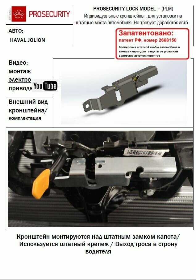 Замок капота для Haval Dargo, H3, H5, Tank 500 электромеханический PROSECURITY интересное: