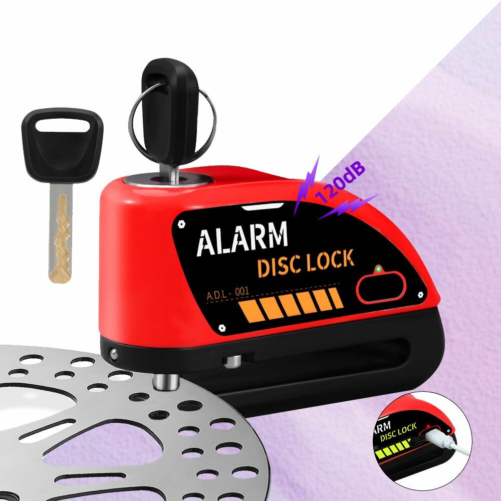 Купить Мотоцикл дисковый тормоз замок 4D001, Противоугонный комплекс, автосигнализация,120 дБ, перезаряжаемый, красный