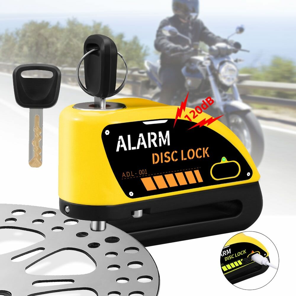 Мотоцикл дисковый тормоз замок 4D001, Противоугонный комплекс, автосигнализация,120 дБ, перезаряжаемый, жёлтый, С 1.8m противоугонный кабель
