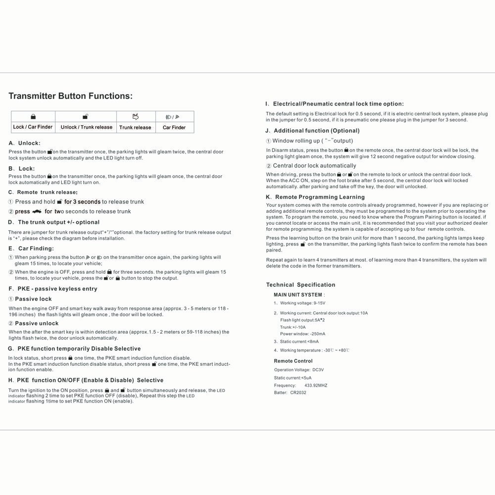 Центральный замок с брелоками 2шт K-71