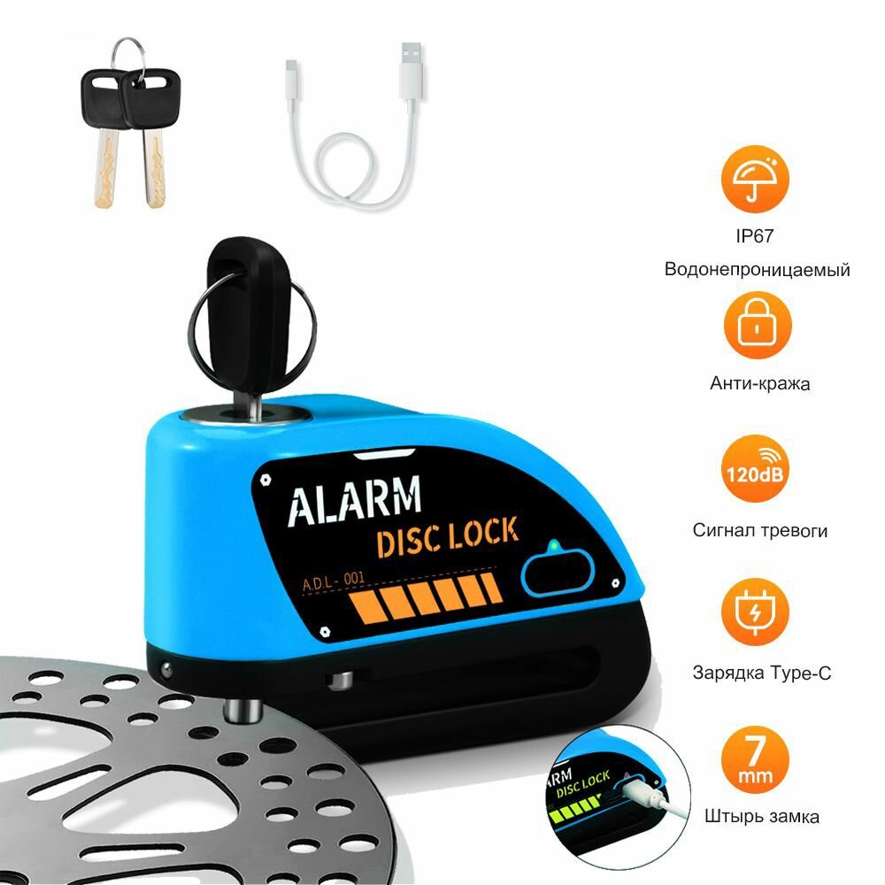 Противоугонный замок на дисковые тормоза мотоцикла, скутера, велосипеда с сигнализацией, Синий интересное: