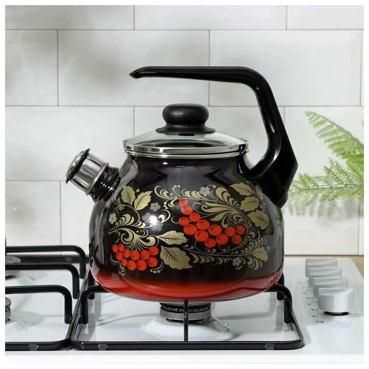 СтальЭмаль Чайник со свистком 4с209я, 3 л, черный рябина