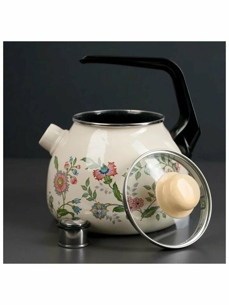 Чайник для плиты со свистком Каллы эмалированный, 3 л