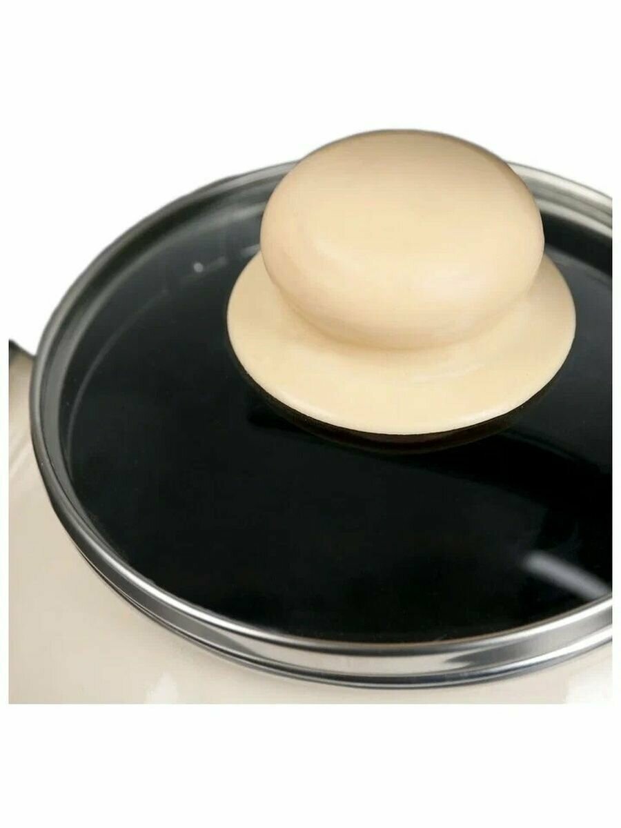 "Авокадо" Чайник эмалированный 2л, д19см, h13см, со свистком, сферическая форма, стеклянная крышка, белый