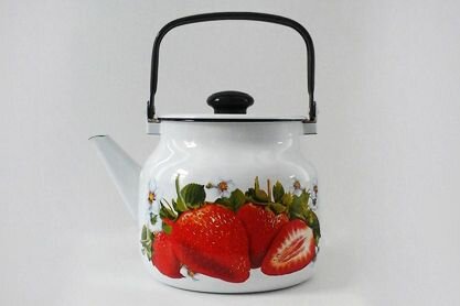 Чайник эмалированный 3,5 литра Лысьва белый, фруктовая фантазия, подвижная ручка, все виды плит, индукция
