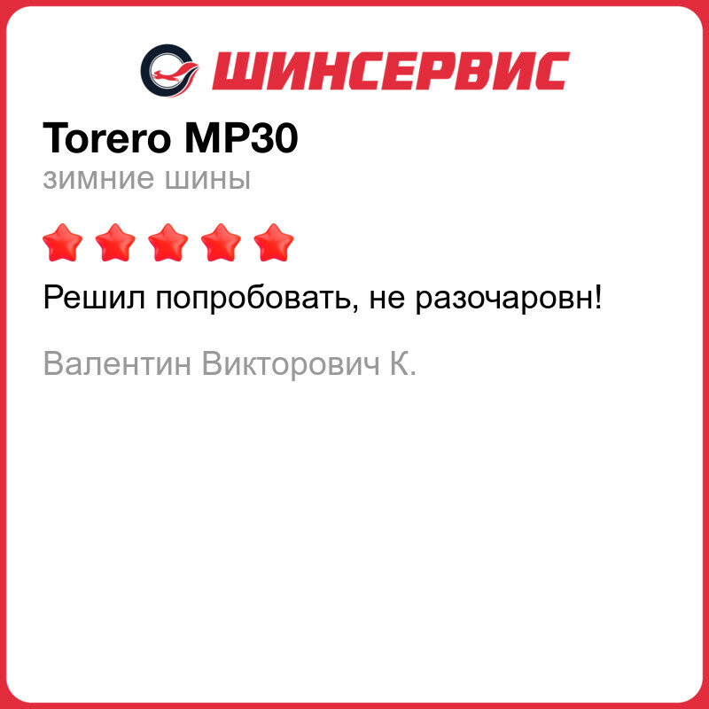 Ниже Вы можете прочитать отзывы на Зимняя шипованная шина Torero MP30 205/55 R16 94T, ознакомится с подробными характеристиками, посмотреть интересные обзоры и фотографии на Зимняя шипованная шина Torero MP30 205/55 R16 94T.