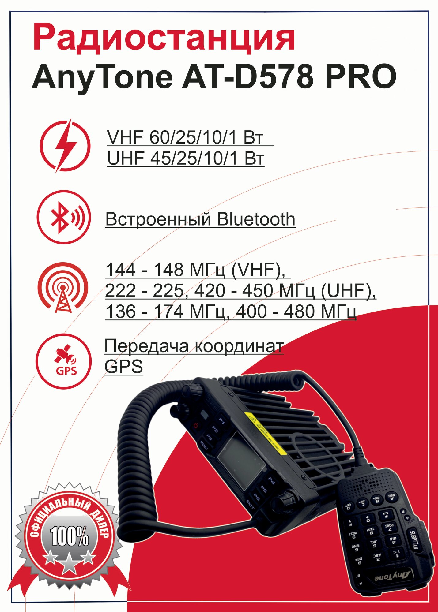 Ниже Вы можете прочитать отзывы на Рация AnyTone AT-D578 PRO, ознакомится с подробными характеристиками, посмотреть интересные обзоры и фотографии на Рация AnyTone AT-D578 PRO.