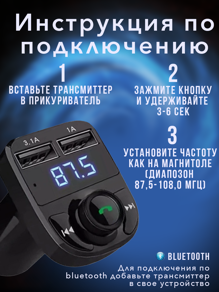 FM трансмиттер с bluetooth, 2 USB, быстрая/умная зарядка, fm-модулятор в прикуриватель, черный интересное: