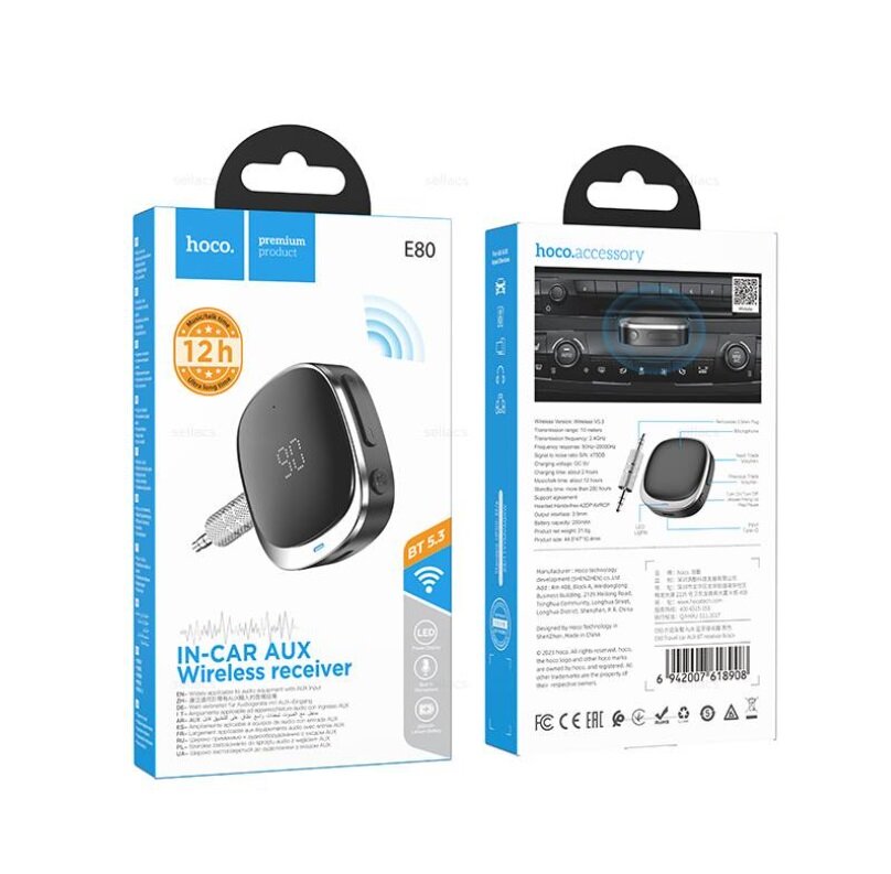 Купить Автомобильный Bluetooth-приемник Hoco E80 Travel, 250 мАч, Bluetooth 5.3/AUX, Черный + Серебристый