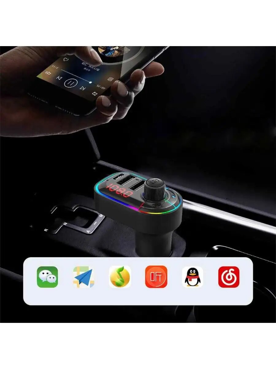 FM трансмиттер Bluetooth с RGB подсветкой / Модулятор автомобильный / Адаптер быстрой зарядки с 3 USB 3.1 A TDS-13