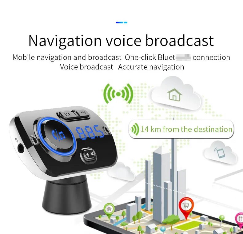 FM-трансмиттер автомобильный с Bluetooth 5,0 и светодиодный-портом интересное: