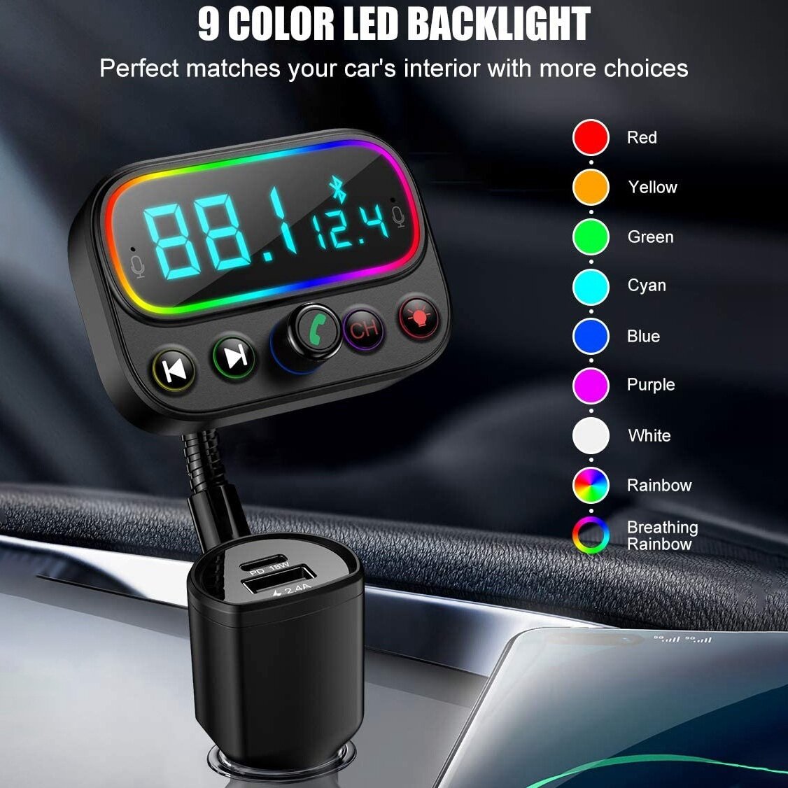 FM трансмиттер Bluetooth с RGB подсветкой / Модулятор автомобильный / Адаптер быстрой зарядки с 3 USB 3.1 A TDS-13