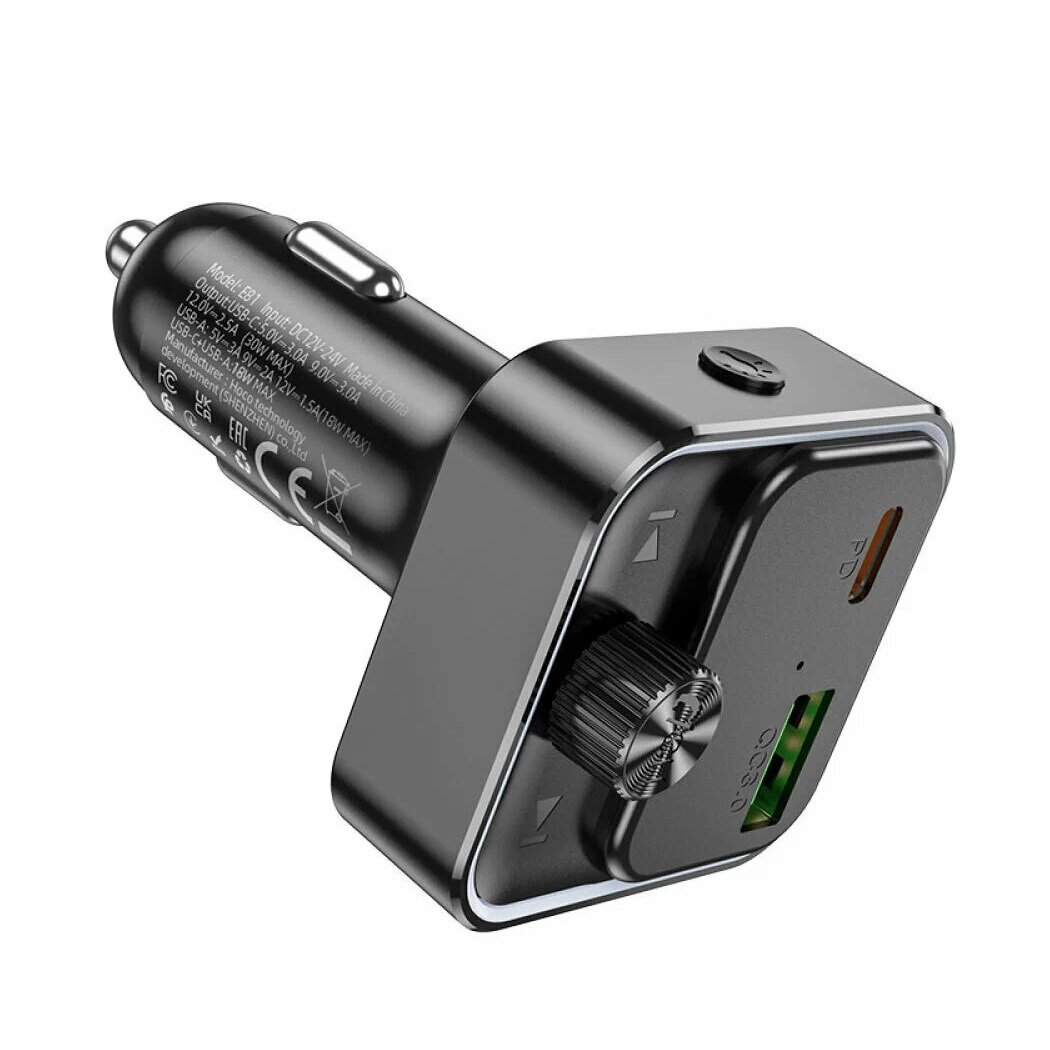 Автомобильный FM-трансмиттер Hoco E81 Fantasy с быстрым зарядным устройством USB+Type-C PD30W+QC3.0, BT V5.0, Hands-free calls, RGB, черный интересное: