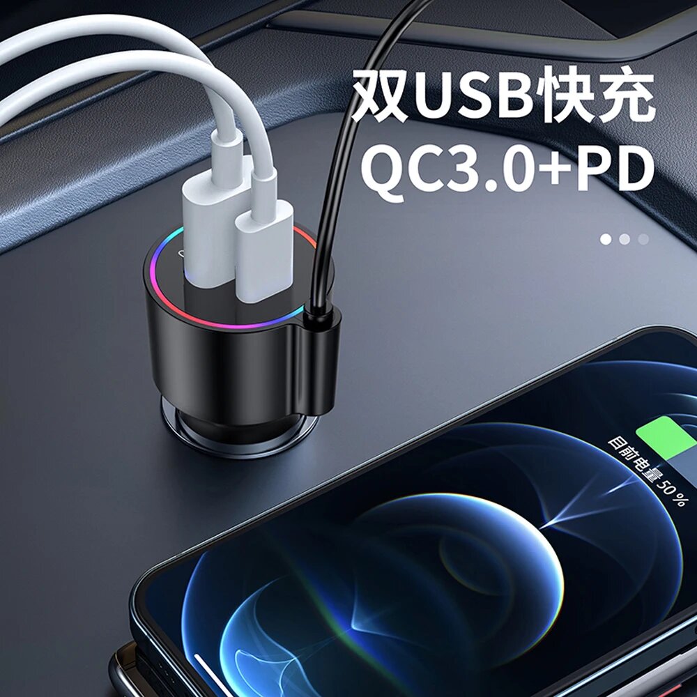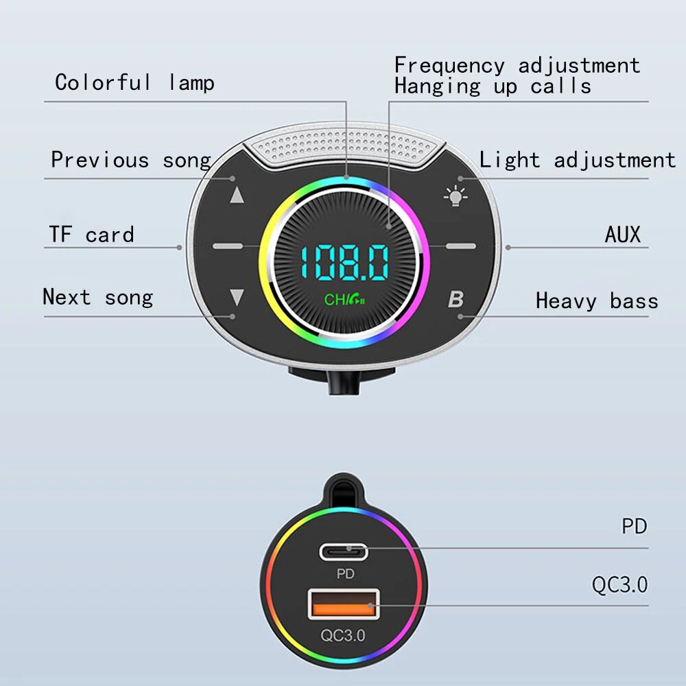 FM трансмиттер Bluetooth с RGB подсветкой / Модулятор автомобильный / Адаптер быстрой зарядки с 3 USB 3.1 A TDS-13