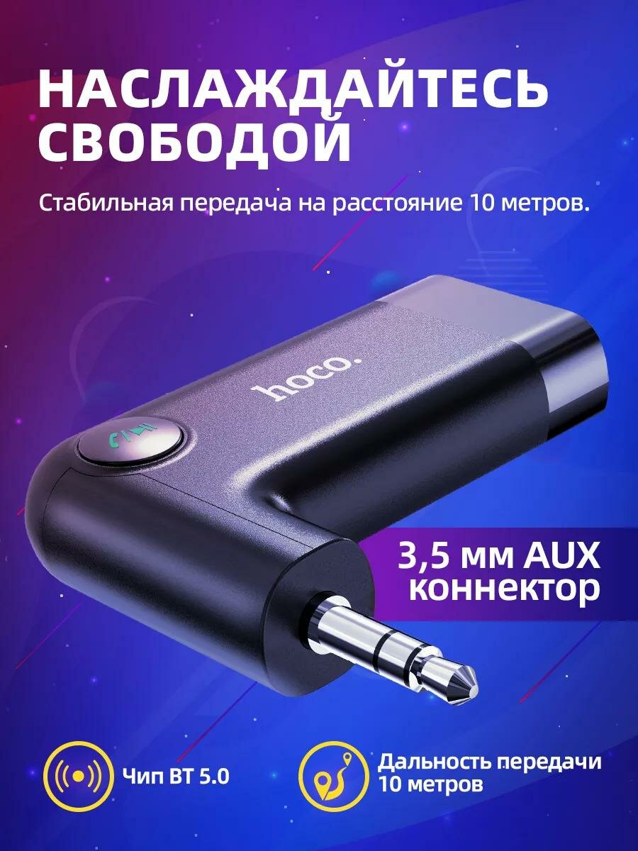 Bluetooth - AUX аудиоадаптер Hoco E53 Dawn sound in-car AUX wireless receiver black интересное:
