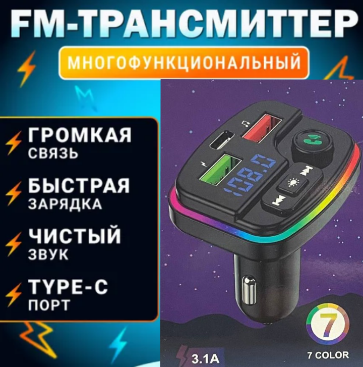 FM трансмиттер Bluetooth/ ФМ модулятор автомобильный в прикуриватель/ Автомобильная зарядка type c интересное: