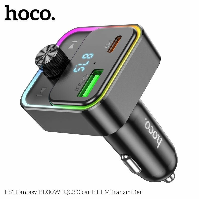 FM модулятор (ФМ трансмиттер) с быстрой зарядкой (USB+Type-C) 30W (с подсветкой), Hoco E81 интересное:
