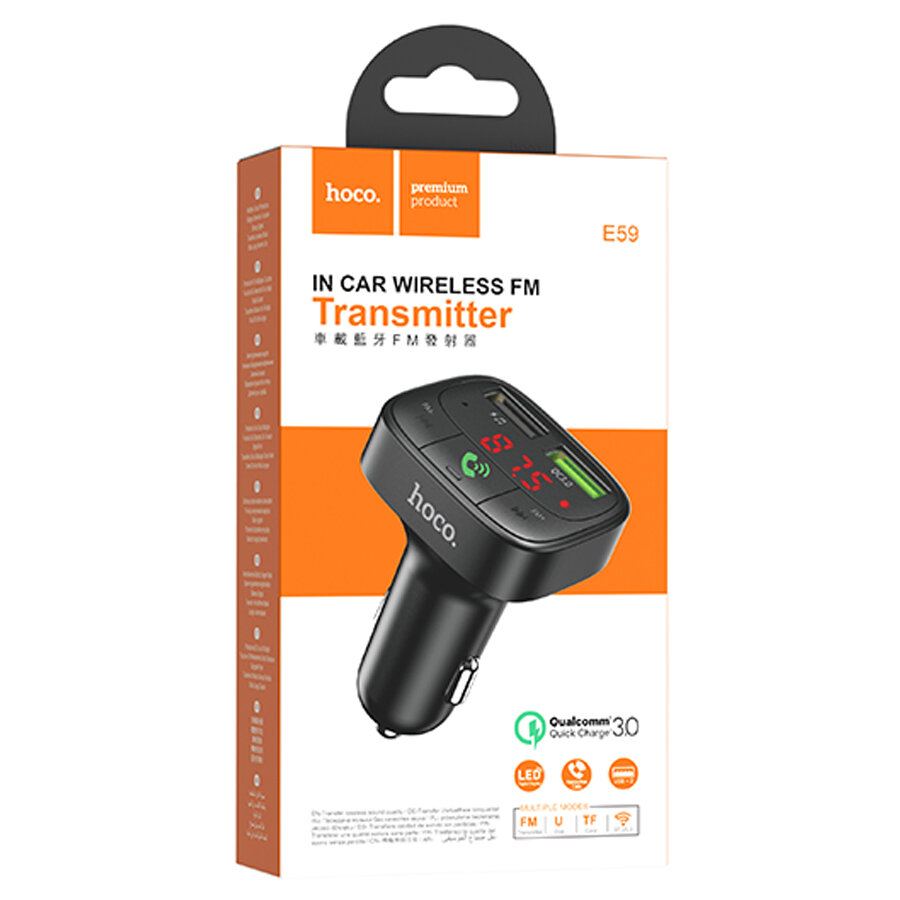 Купить Автомобильное зарядное устройство с FM-трансмиттером Hoco E59 Promise, выход USB QC 18W и USB 5V / 3.1A, черный