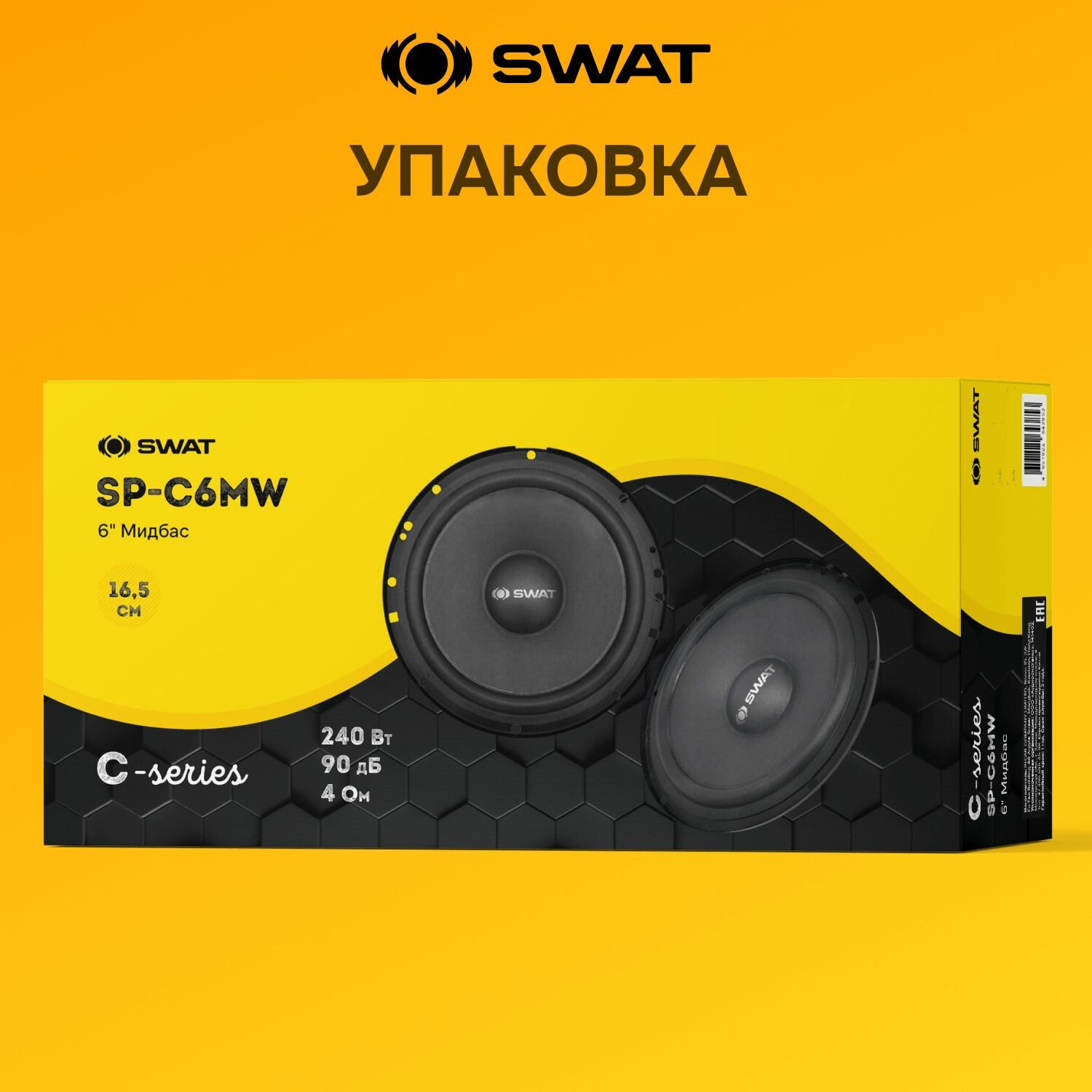 Купить Мидбас SWAT "C-Series" SP-C6MW 16.5", 80Вт-240Вт, чувствительность 90дБ, чёрный, жёлтый