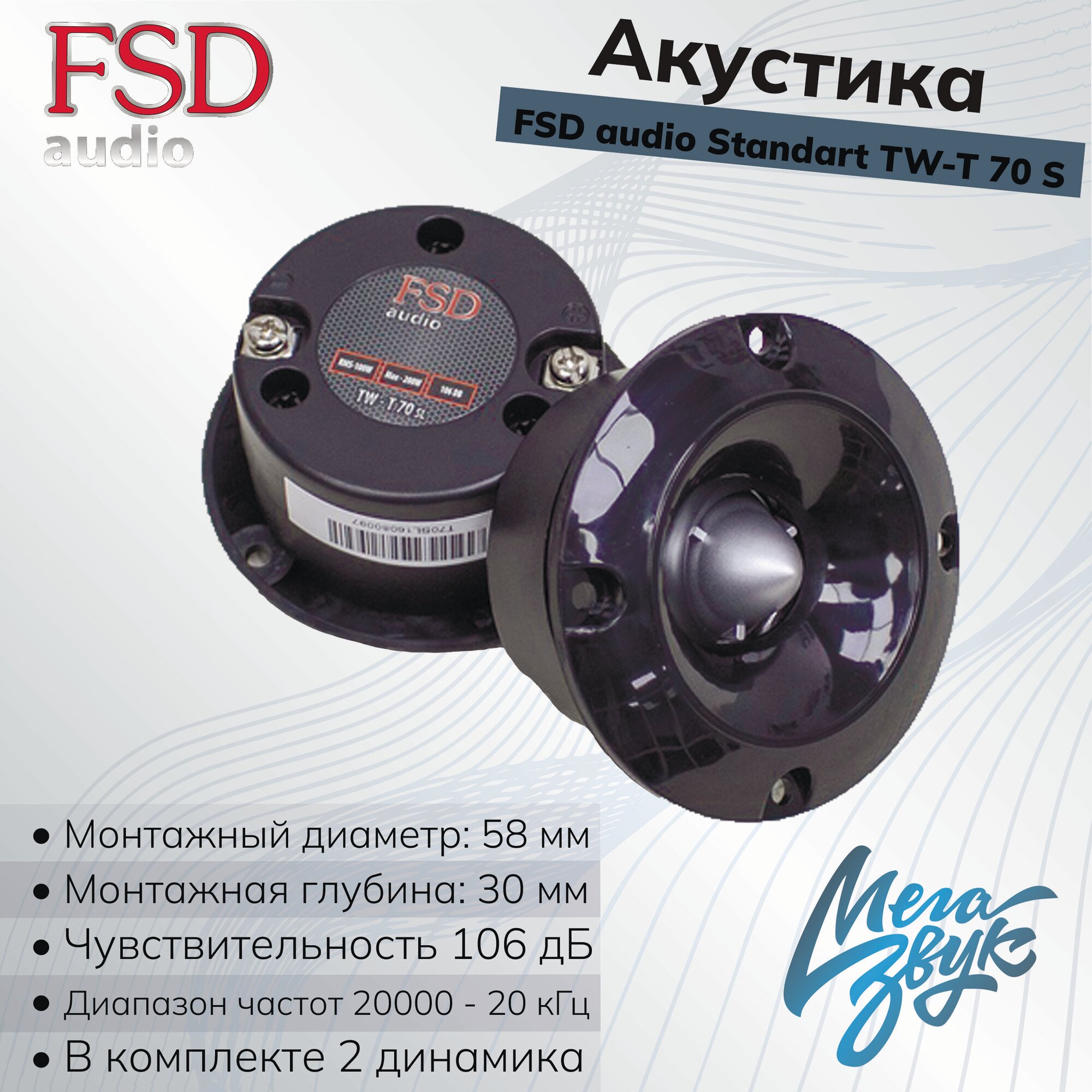 Твитеры FSD audio TW-T 70S, 100Вт, импеданс 4Ом, размер 2.83", 1 полоса интересное: