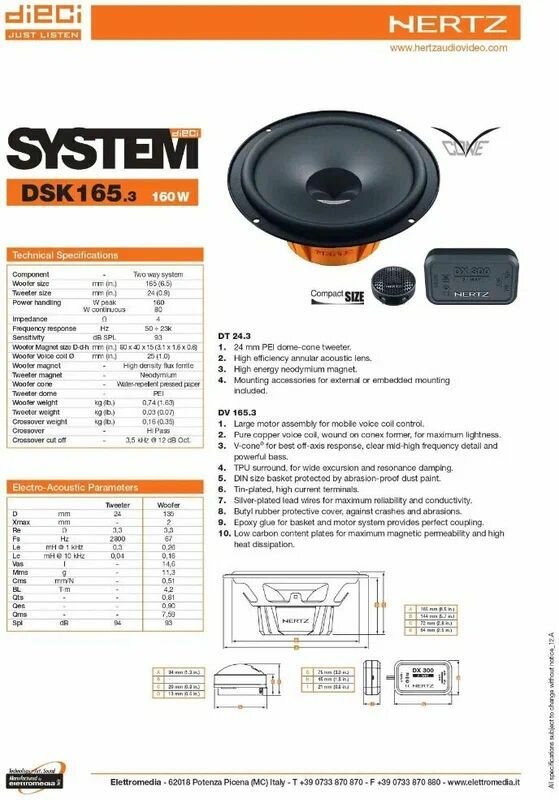 HERTZ DSK Колонки для автомобиля 16.5 см (6.5 дюйм.) интересное: