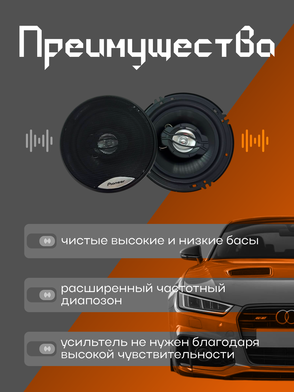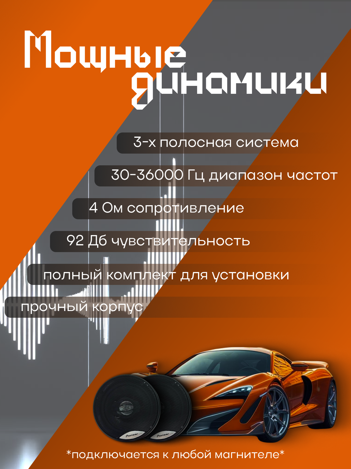 Автоколонки Pioneer TS-A1697S, коаксиальные, 3 полосы, 16 см, 600Вт интересное:
