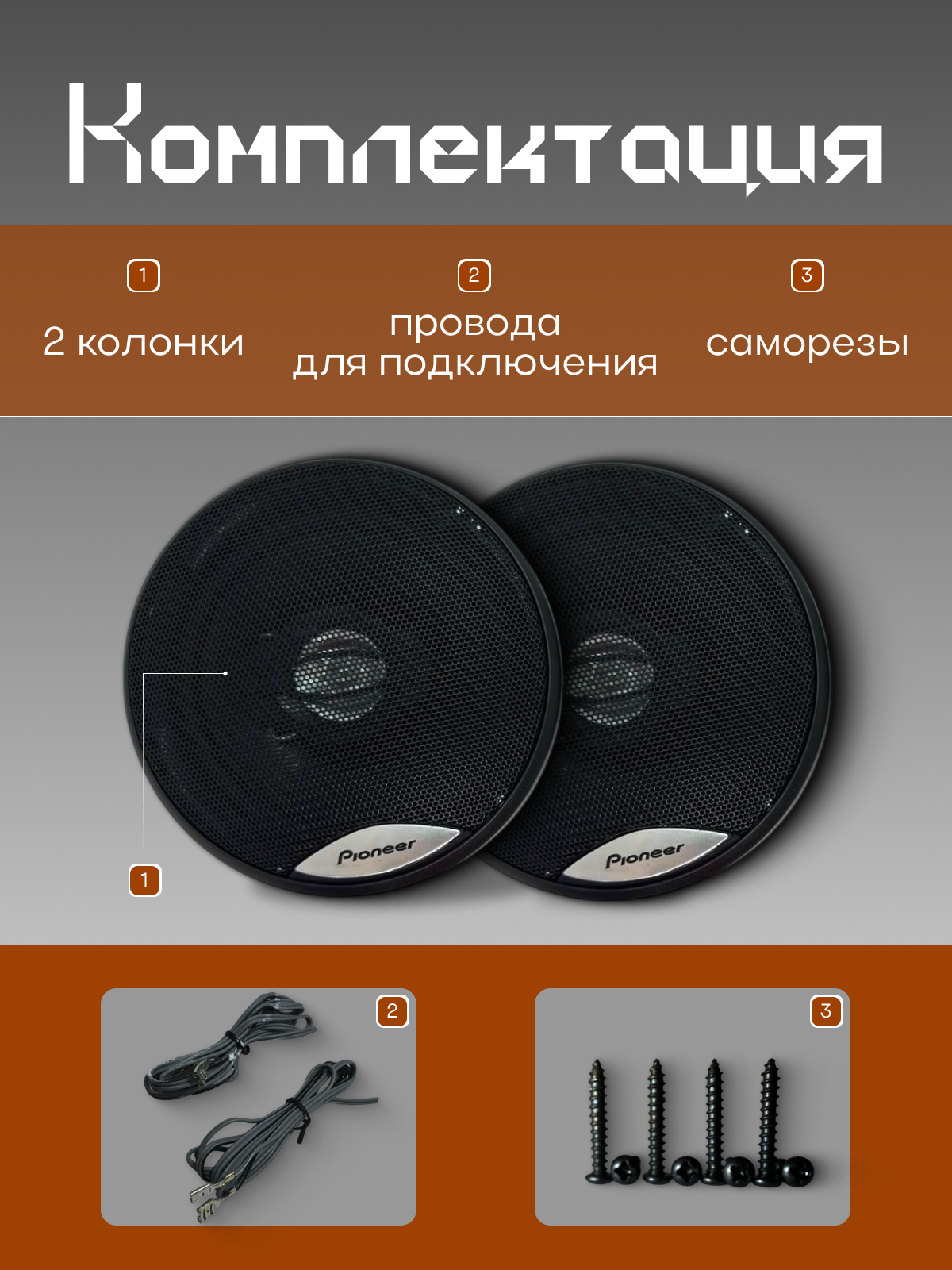 | Комплектация | · Динамики 2 шт. · Защитные сетки 2 шт. · Провода для подключения · Крепления для саморезов · Саморезы для акустики |