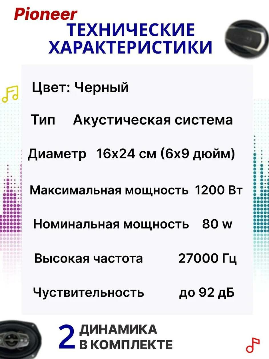 Колонки Pioneer TS-6995R, пятиполосные, 6x9 дюймов, 1200 Вт, 92 дБ интересное: