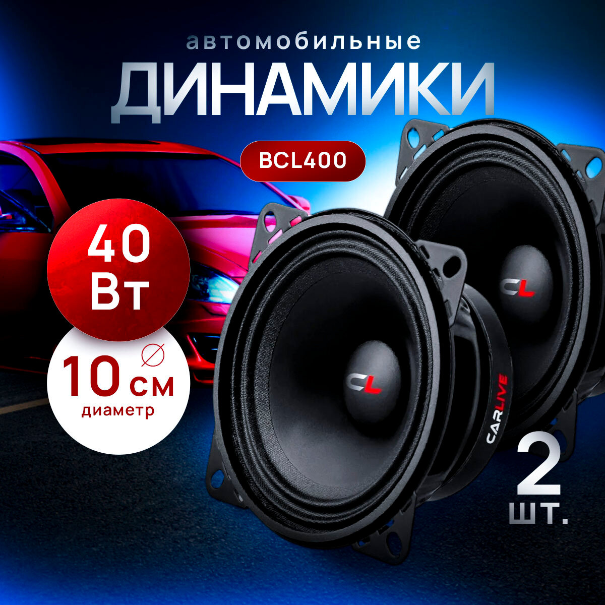 Купить Колонки CARLIVE bcl400, для авто, широкополосные, 10см, 4Ом, 50-100Вт, 2шт