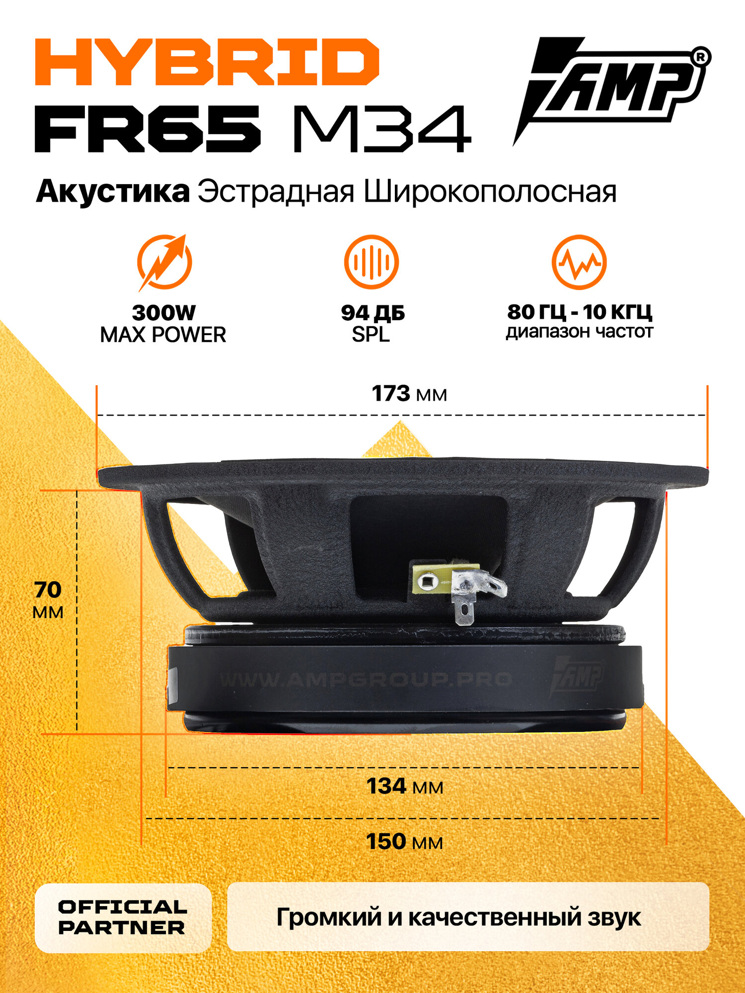 AMP Hybrid FR65M34 Акустика Эстрада Широкополосная (2шт); 16,5см; 300w; 94db интересное: