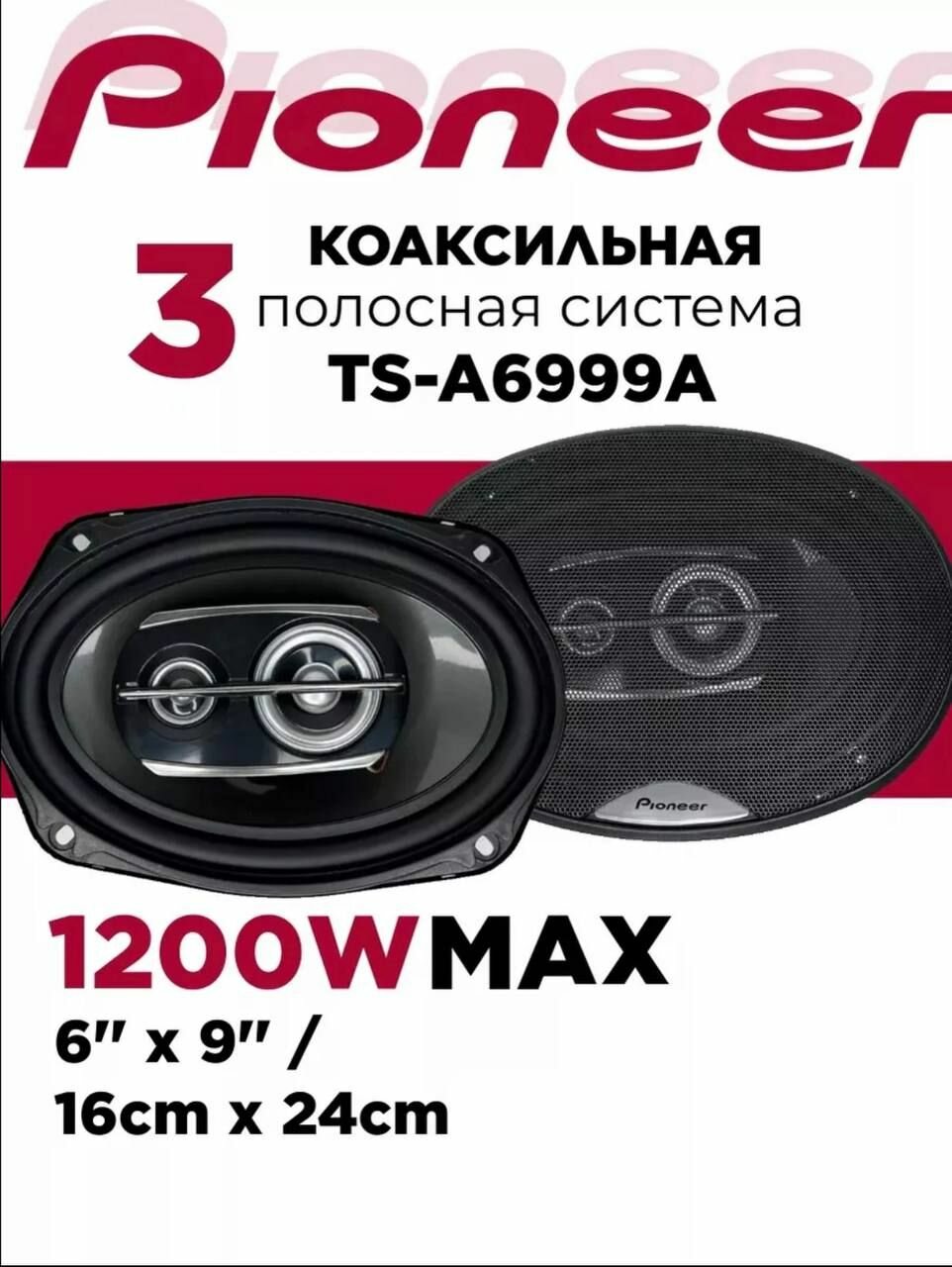 Автомобильные динамики "Pioneer TS-A6999A" / Комплект из 2 штук / Коаксиальная акустика 3-х полосная, Овал 15х23 См (6х9 Дюйм.), 1200 Вт. интересное: