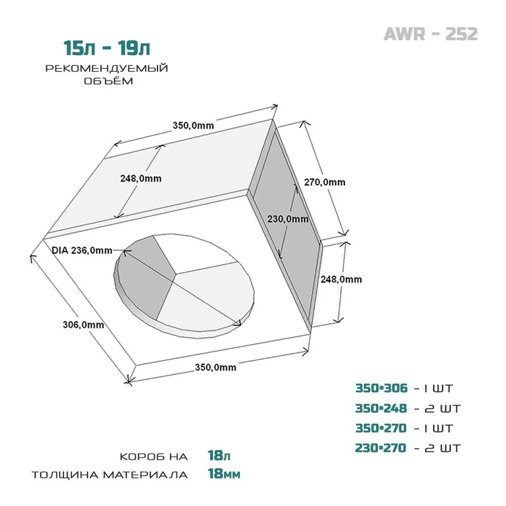Купить Сабвуфер ABENT AWR-252, 10", 450Вт, чувствительность 87дБ, черный