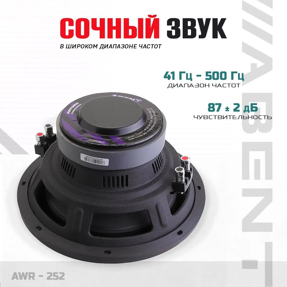 Сабвуфер ABENT AWR-252, 10", 450Вт, чувствительность 87дБ, черный интересное: