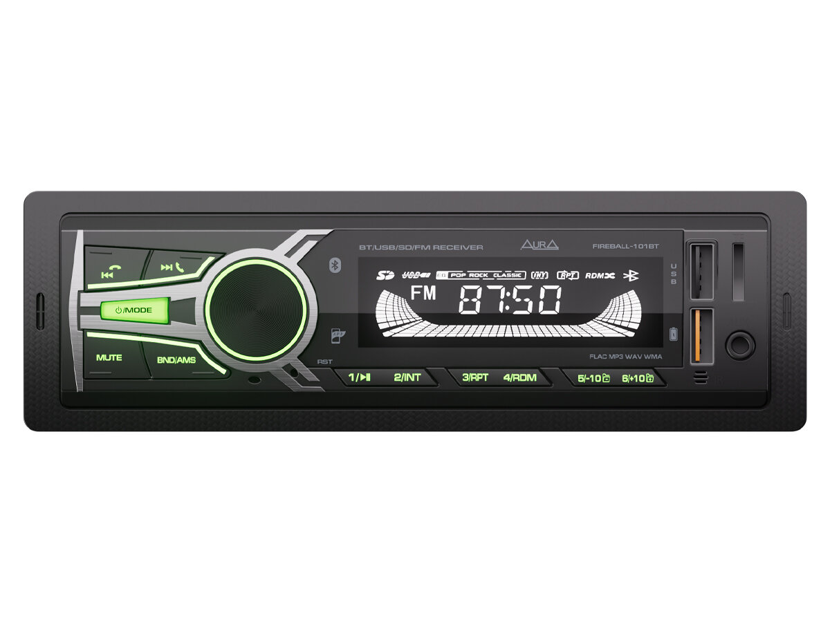 Купить Магнитола автомобильная Aura FIREBALL-101BT USB/SD/MMC-ресивер, зелёная подсветка