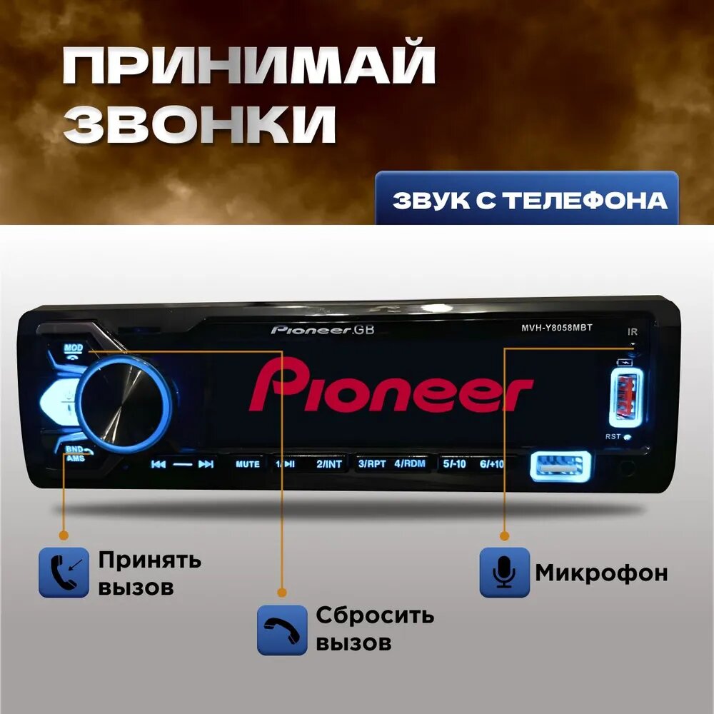 Автомагнитола 1 DIN, для авто, Bluetooth, 1Din / Pioneerdvd