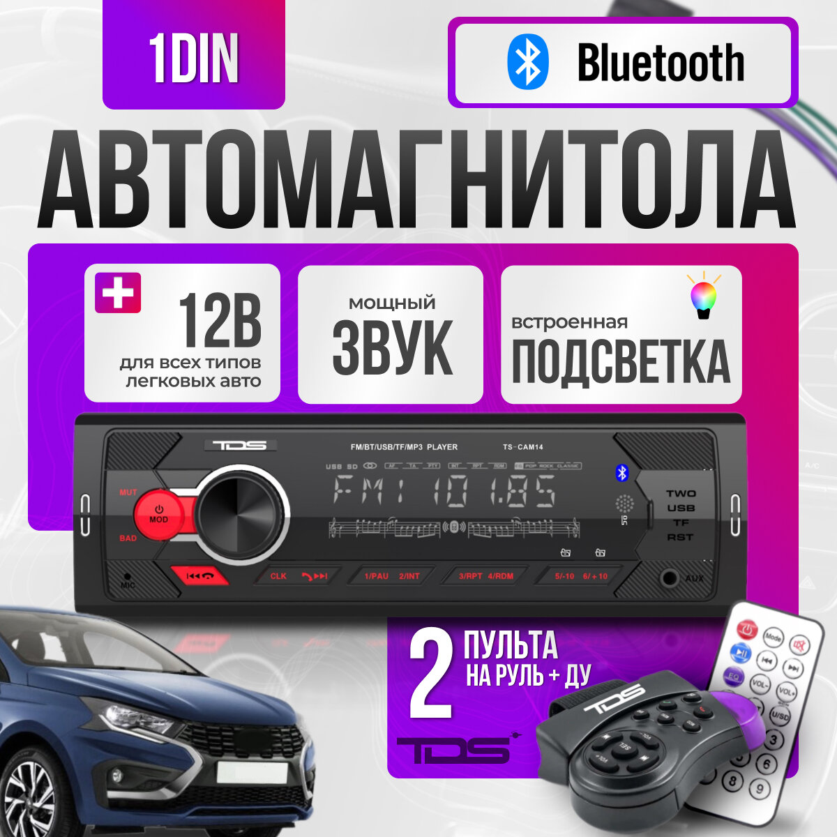 Автомагнитола 1 DIN с пультом с Bluetooth, AUX, USB универсальная TDS TS-CAM14 интересное:
