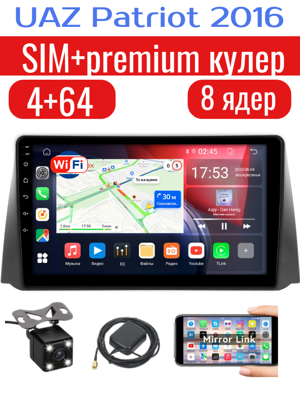 Магнитола Uaz patriot / УАЗ патриот 9 дюймов/4+64Gb/ядер-8/ CarPlay/кулер/Андроид Авто/SIM/рамка и камера в подарок