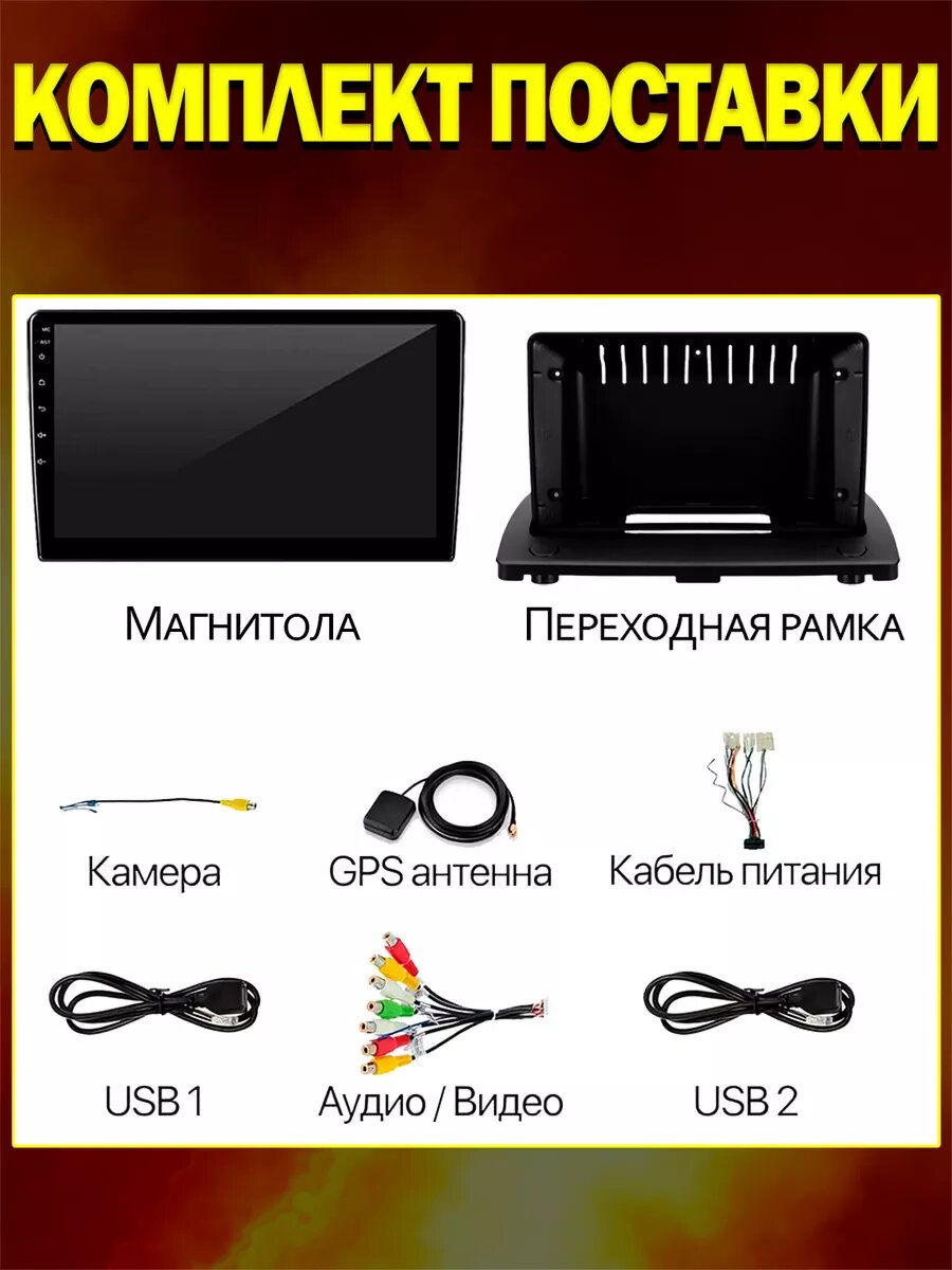 | Подробная комплектация | магнитола; провода для подключения; инструкция; Переходная рамка |