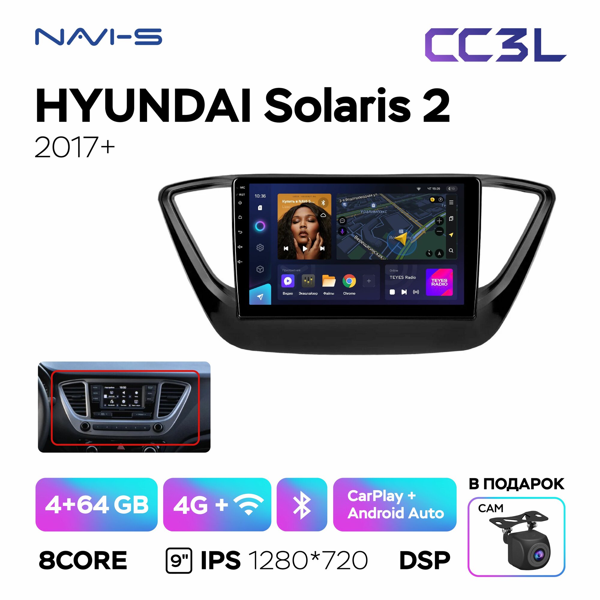 Купить Автомагнитола Teyes CC3L 4/64 для Hyundai Solaris 2 (Хендай Солярис 2) 2017 - 2022 черная