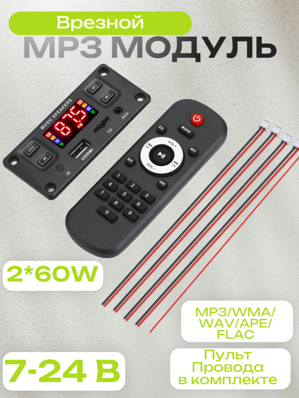 MP3/WMA/WAV/APE/FLAC модуль Bluetooth ( автомагнитола ) в автомобиль 12V , Мощность 2 * 60 Вт интересное: